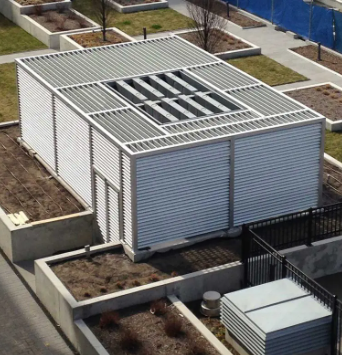 AGS’s aluminum equipment screens are essentially any screening device that hides unattractive equipment or provides privacy. They are vertical structures consisting of aluminum panels, tubes or grille infill. Perfect applications include areas where mechanical equipment needs to be concealed but airflow is required. These areas include parking garages, HVAC equipment, roof top mechanical equipment and ambulatory areas.